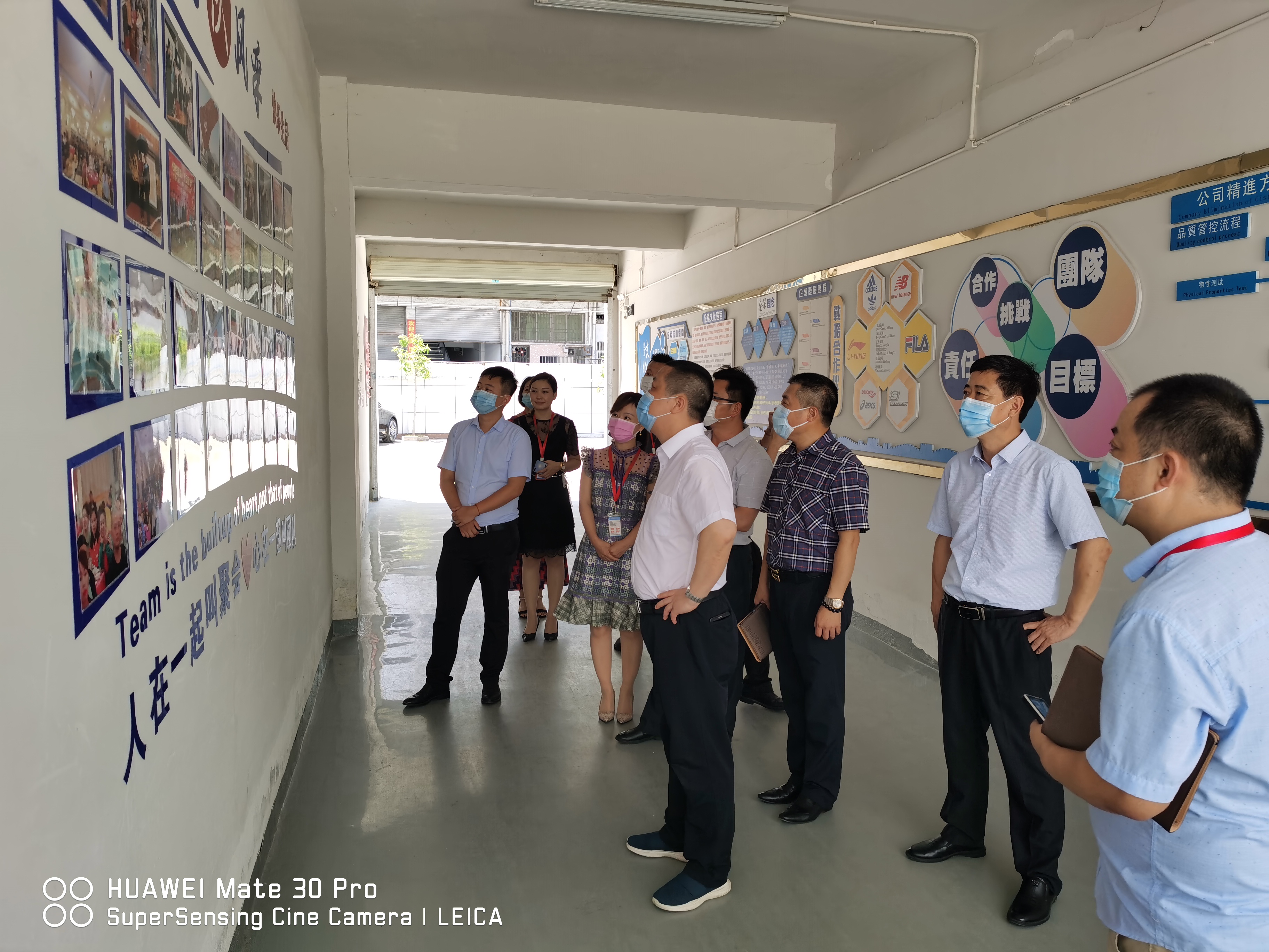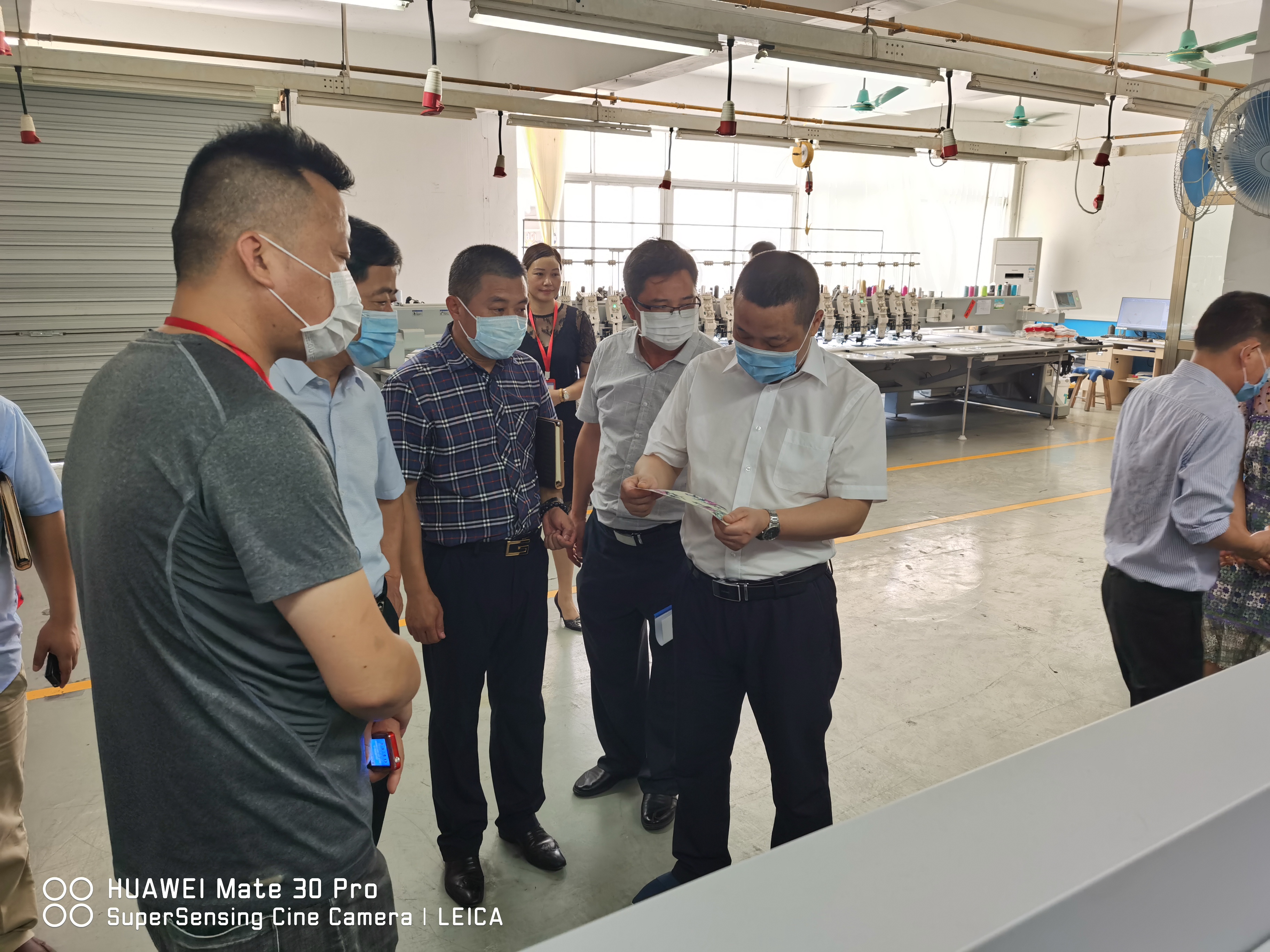 At 10:00 a.m. on June 18, 2020, Secretary Peng of Anfu county Party committee of Jiangxi Province and his delegation visited Dongguan Xinhong Sports Technology Co., Ltd. for inspection. The general manager Mr. Xu Yifeng of Xinhong, and the assistant manager level cadres of the company gave a warm reception, and went into the office area, innovation research and development center, 3D hot pressing workshop and fusing hot pressing workshop to inspect various works, checked our company in detail Personnel management, safety production, product quality and work flow, etc. At first, leaders came to Xinhong public office area to see the company's development process, management system and future development plan. Leaders pointed out some suggestions and opinions for this purpose, hoping that the company could be further improved in future development. Then, followed the step of general manager Xu, everyone came to our innovation research and Development Center for investigation. General manager Xu explained to the leaders of the whole 3D printing technology, computer three-dimensional embroidery innovative production and process,the leaders gave great praise to the whole production process.